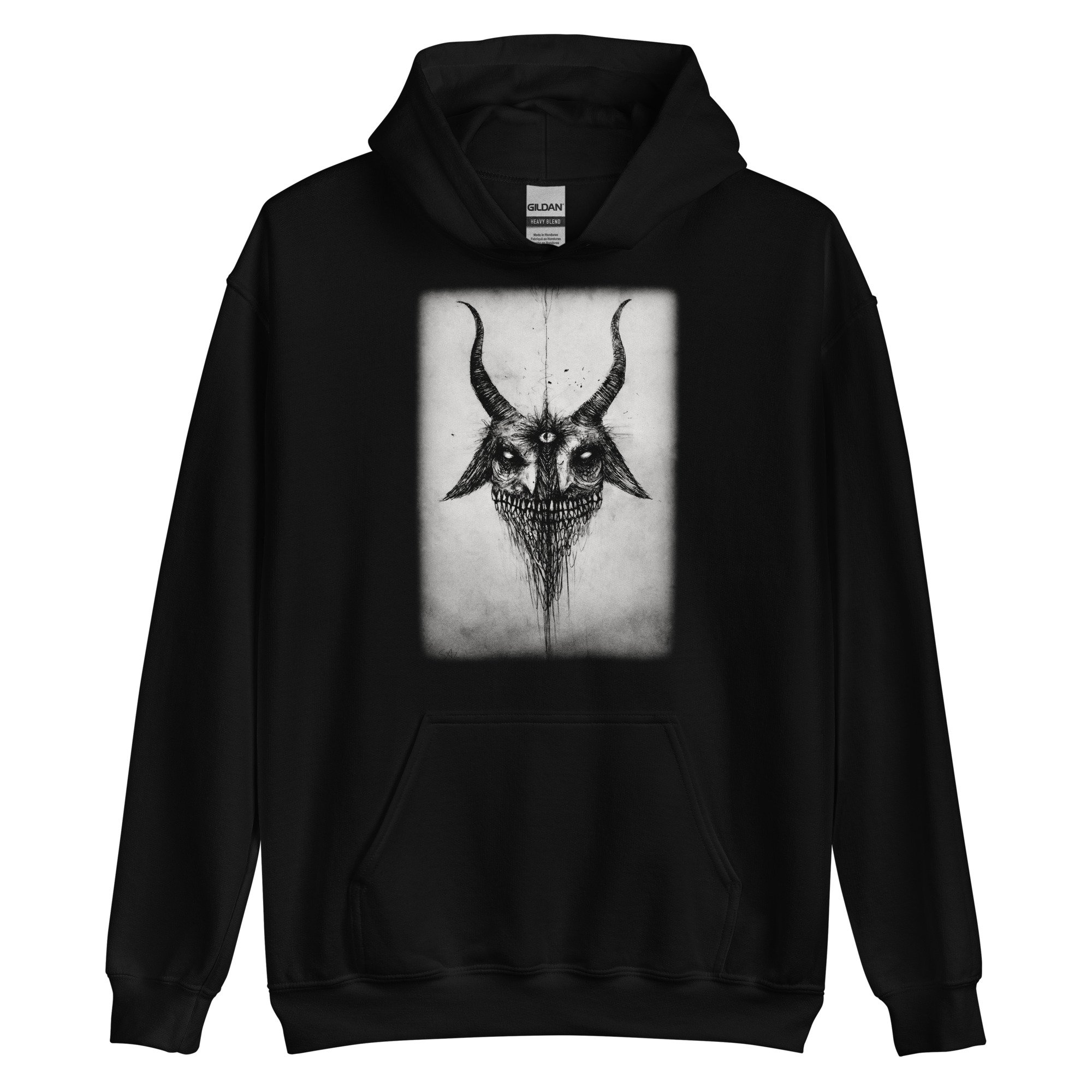 My original drawing "Daemon" printed on a Heavy Blend Gildan hoodie